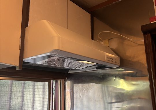 レンジフード以外の部分をいじりたくないとのことでしたため、設置されていたレンジフードと同じ浅型のタイプを選定しています。
