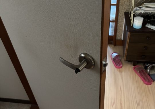ドアノブが下げ方向に動かなくなり↑方向でしか開閉が出来なくなったため。