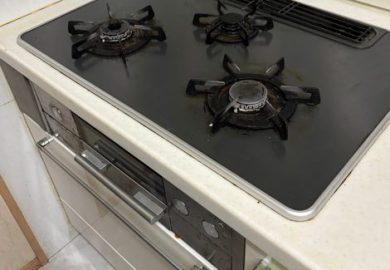 『ガラスの天板が綺麗だね。これで久しぶり焼魚が家で食べれて嬉しいよ。ガス栓も交換改善してくれてありがとう!。』