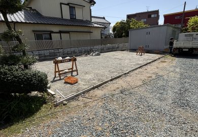 遠く離れたとこに車を駐車していいるが近くの空いているスペースに車を駐車したいが地盤が緩くぬかるみにはまってしまったためコンクリートを打って屋根を付けたい。