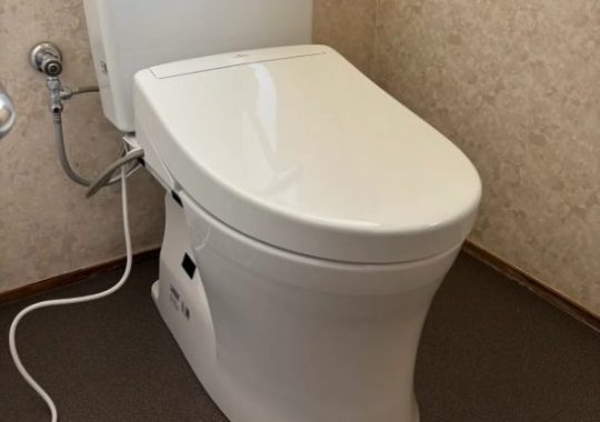 ウォシュレット不調から聞き取りを行い、「便器付近フロアマットの汚れを解消したい」とのことで交換に至りました。