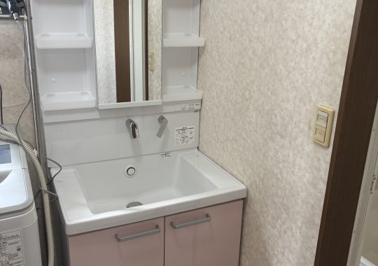 化粧台の水栓がぐらつく為、水栓だけ交換希望でしたが、化粧台ごとの交換費用を並べた時に使用年数も10年以上の為、交換。
