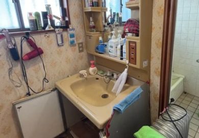 どこから分からないが水漏れしていて洗面台の底がブカブカになって収納が出来ないから交換したい。あと蛇口が2ハンドルだから洗髪ができないので洗髪できる水栓にしたい。