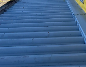 駄菓子屋さんの屋根塗装を行いました。お店に来店するお客様に塗装の匂いでご迷惑をかけないようにお仕事の邪魔に塗装剤を油性から水性にいたしまして匂い対策をしています。施工時の塗装臭が感じにくい利点から水性塗料で屋根部塗装をしています。