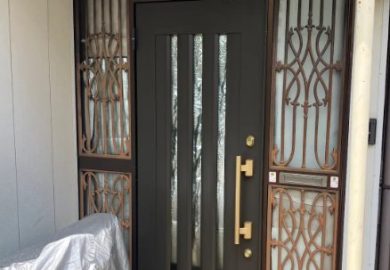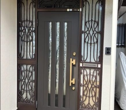 外壁塗装をしたとき、玄関サッシの格子の劣化が気になるとのご相談からです。