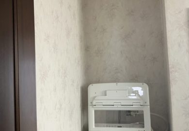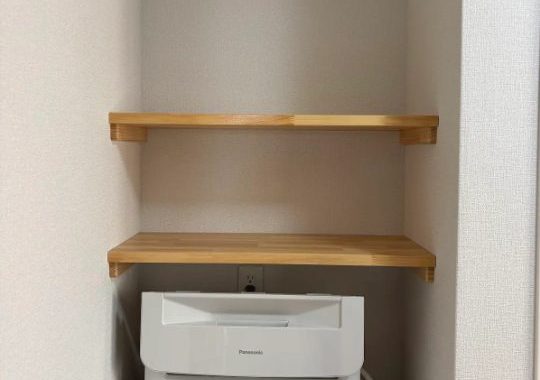 洗濯で使用している洗剤・柔軟剤などが床に置いているが、上に棚があれば便利になるから。