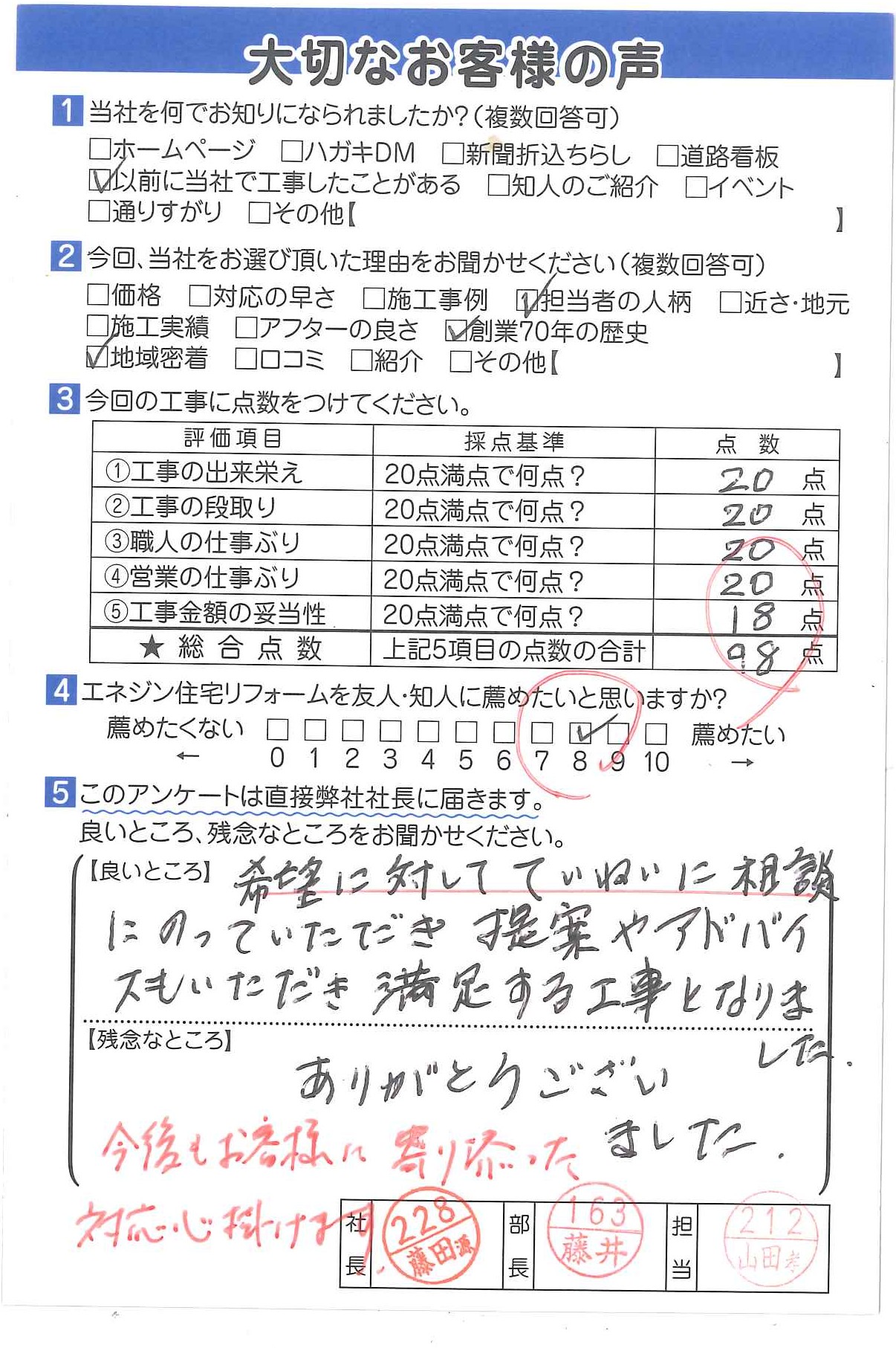 希望に対してていねいに相談にのっていただき提案やアドバイスもいただき満足する工事となりました。
