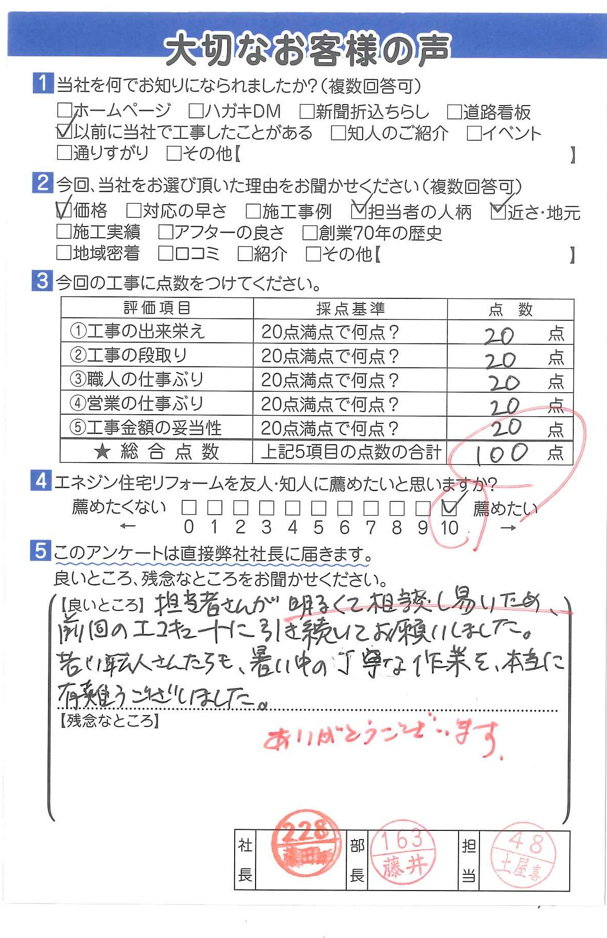 | 工事の出来栄え | 20点満点で何点? | 20点 |