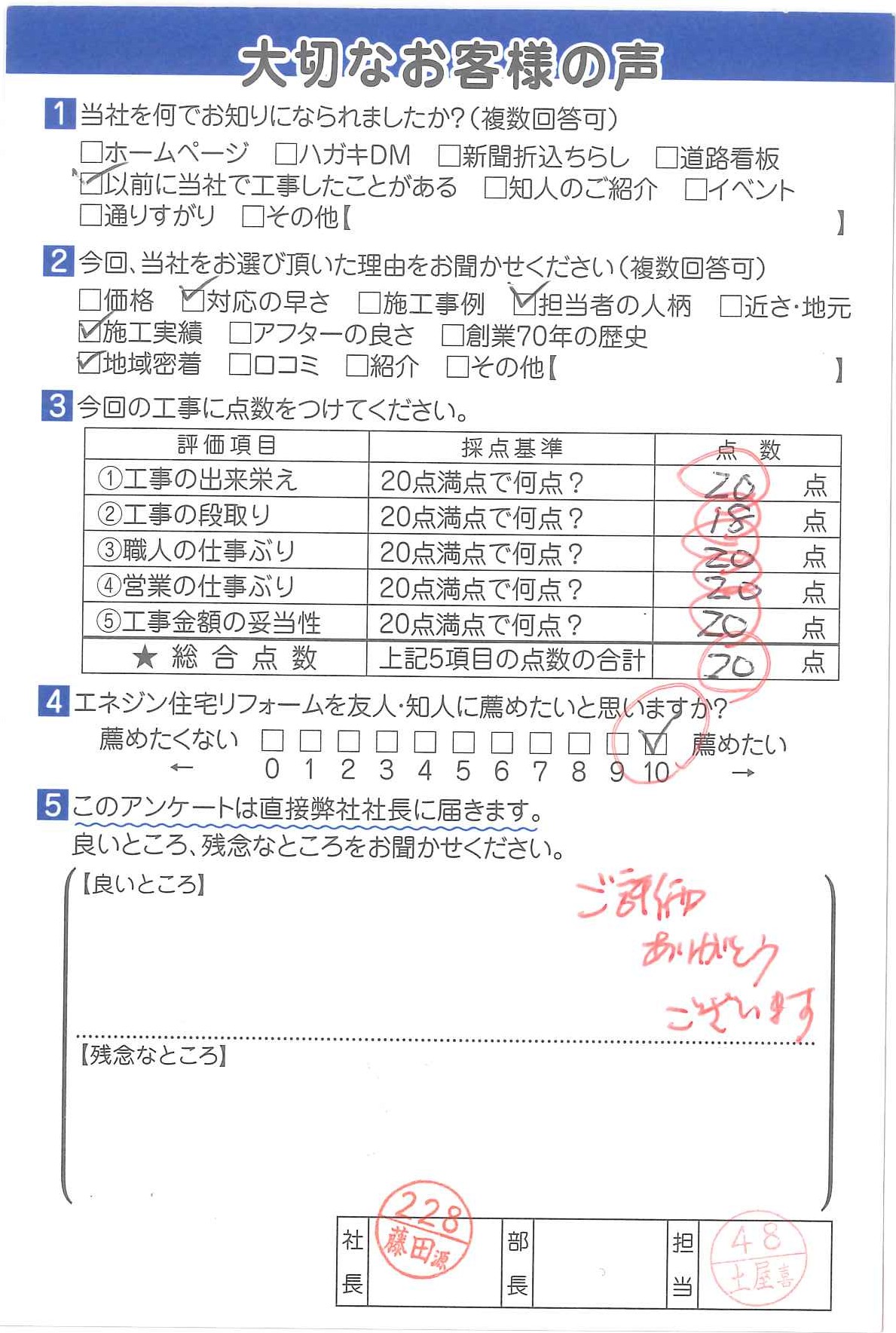 | 工事の出来栄え | 20点満点で何点? | 20点 |