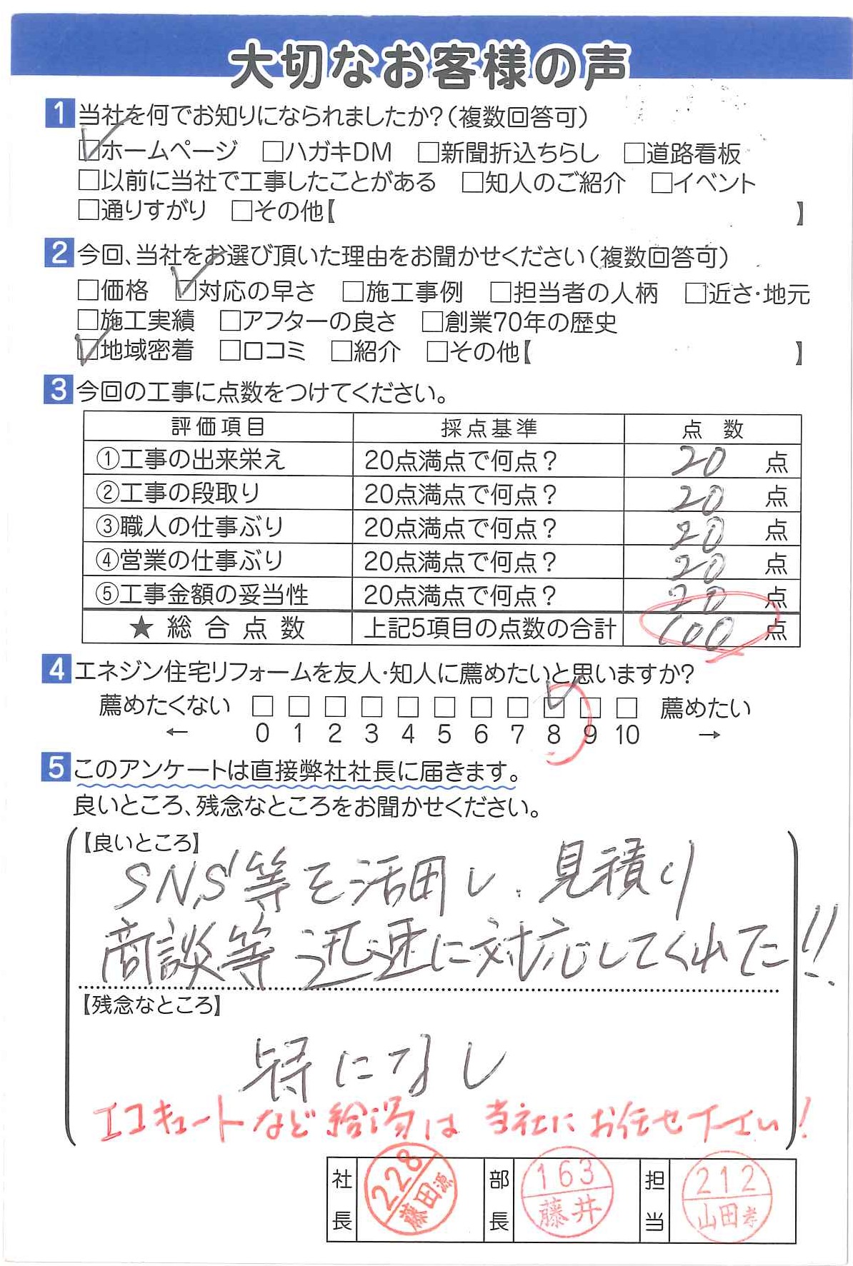 | 工事の出来栄え | 20点満点で何点? | 20点 |