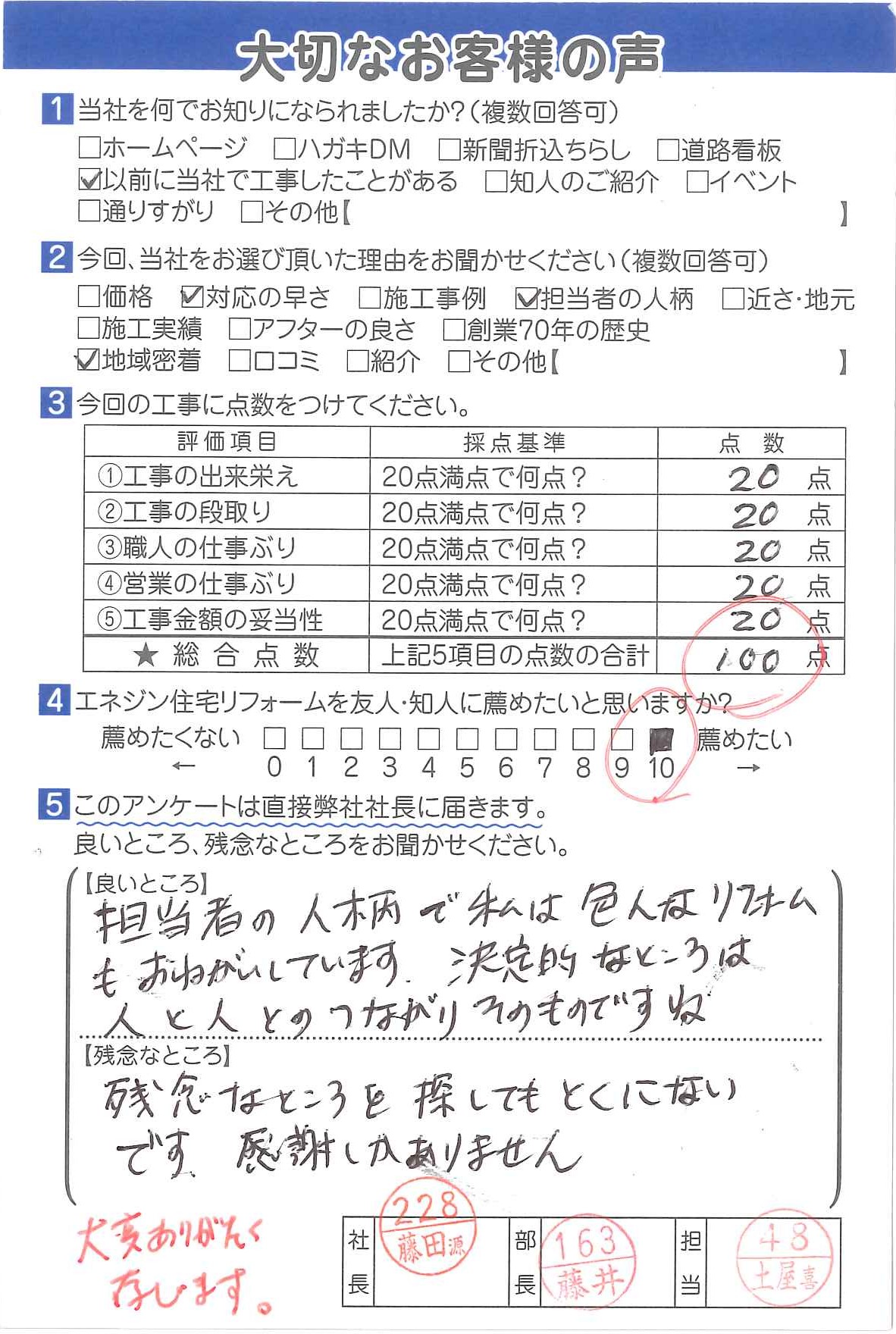 「担当の人柄で私は色んなリフォームもおねがいしています。決定的なところは人と人とのつながりそのものですね。」