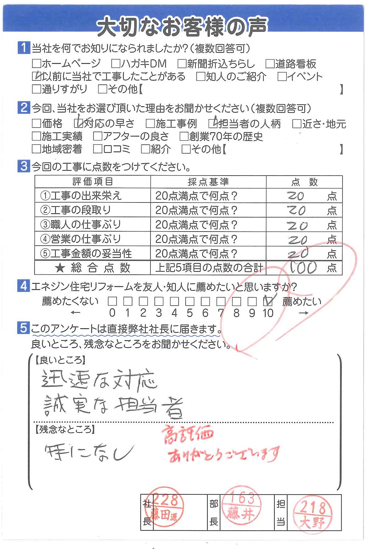 | 工事の出来栄え | 20点満点で何点? | 20点 |