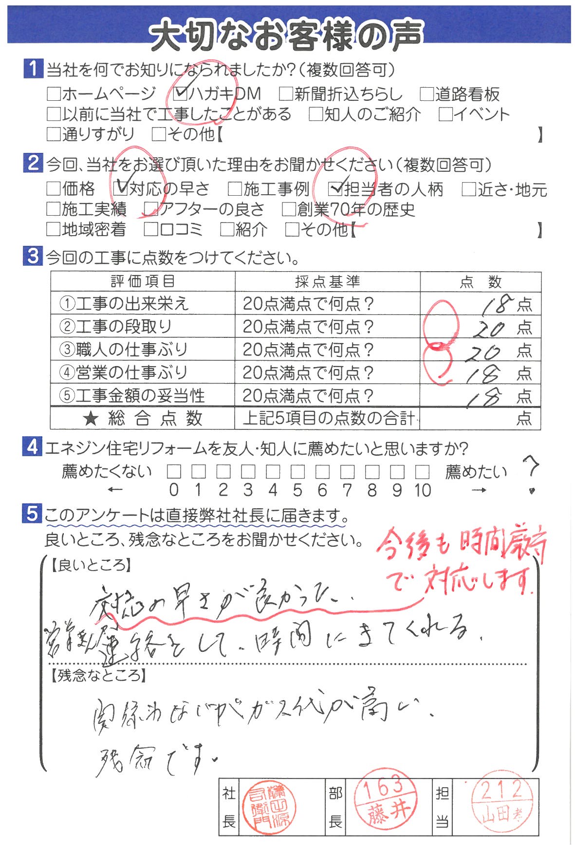 | 工事の出来栄え | 20点満点で何点? | 18点 |