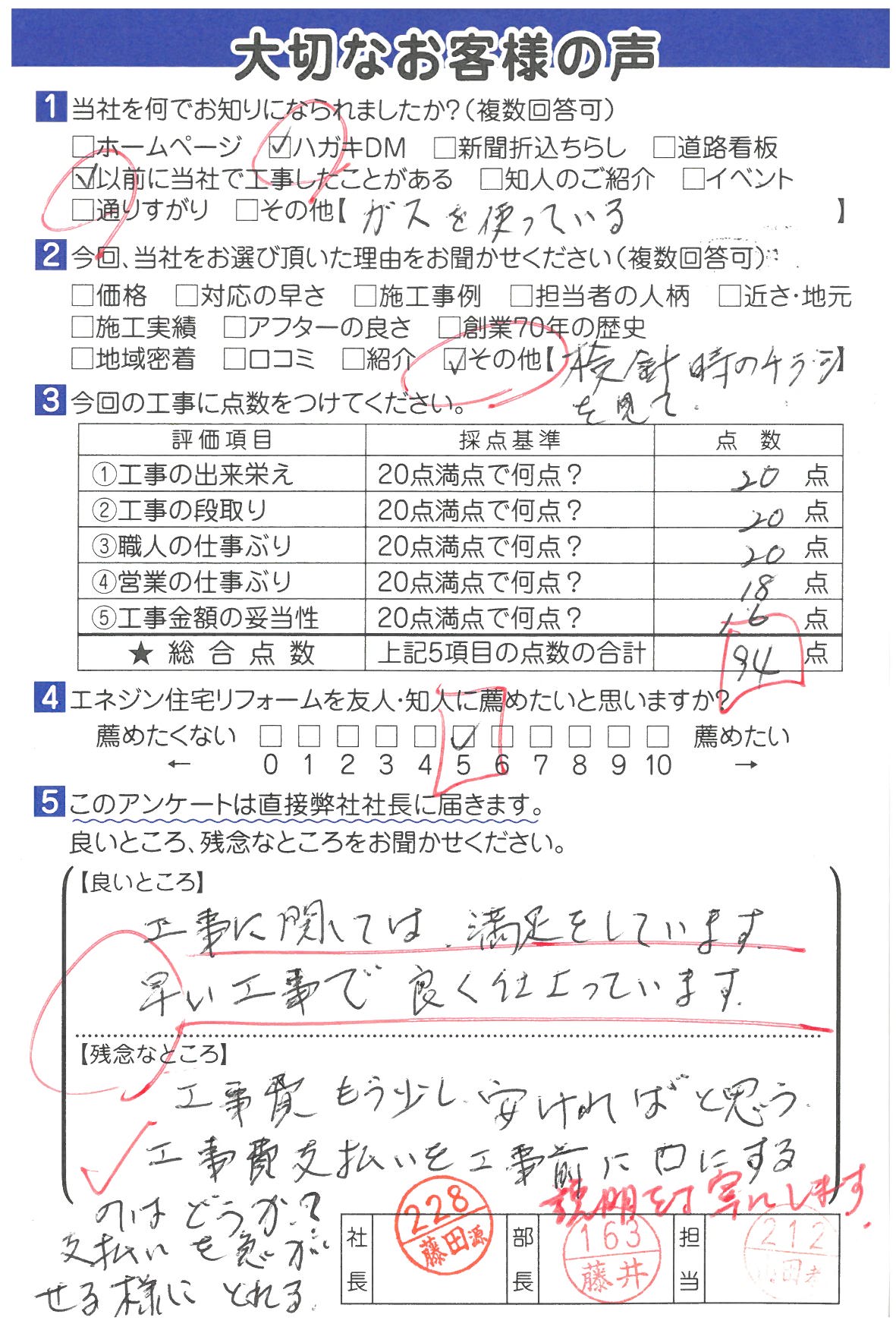 「工事に関しては満足しています。早い工事で良く仕上がっています。」