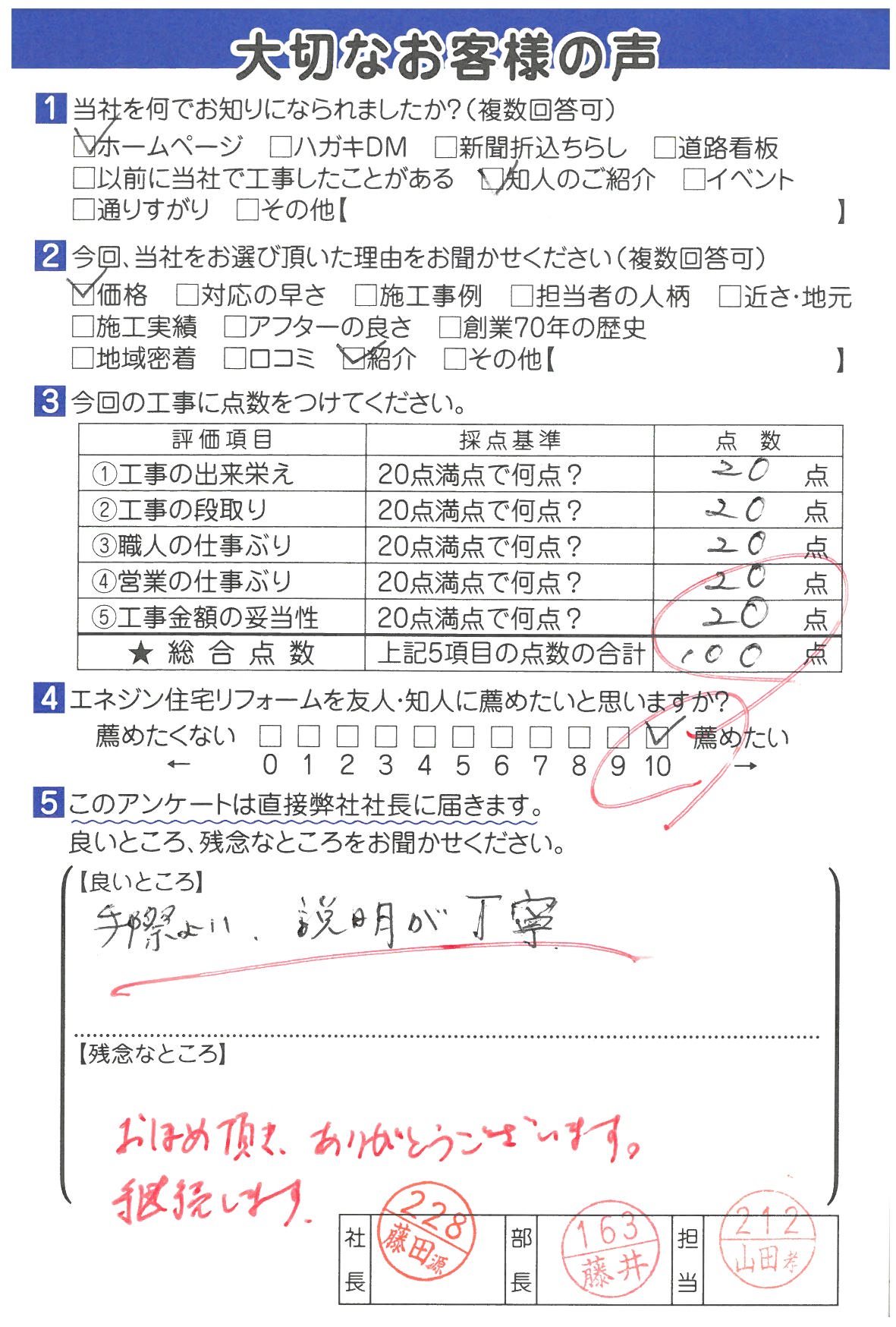 | 工事の出来栄え | 20点満点で何点? | 20点 |
