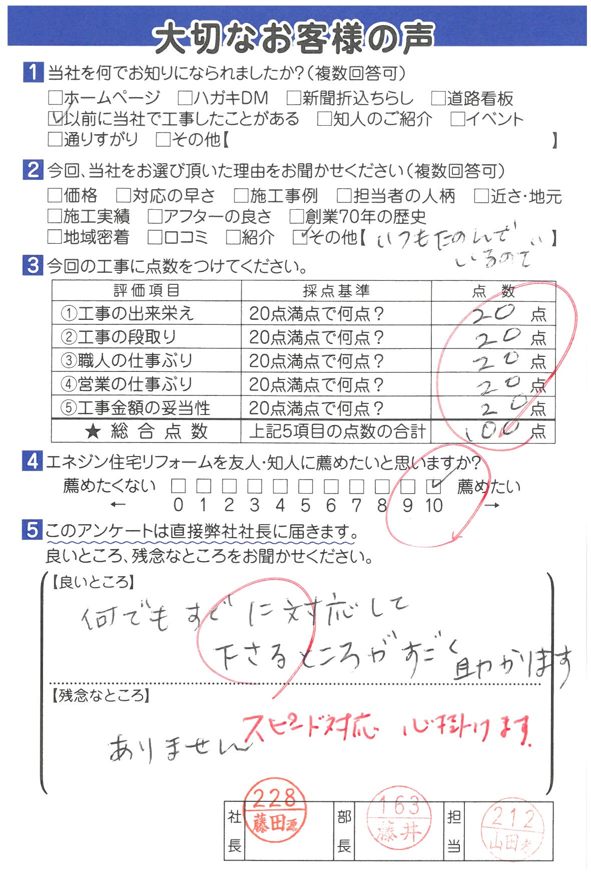 直筆!お客様の通信簿